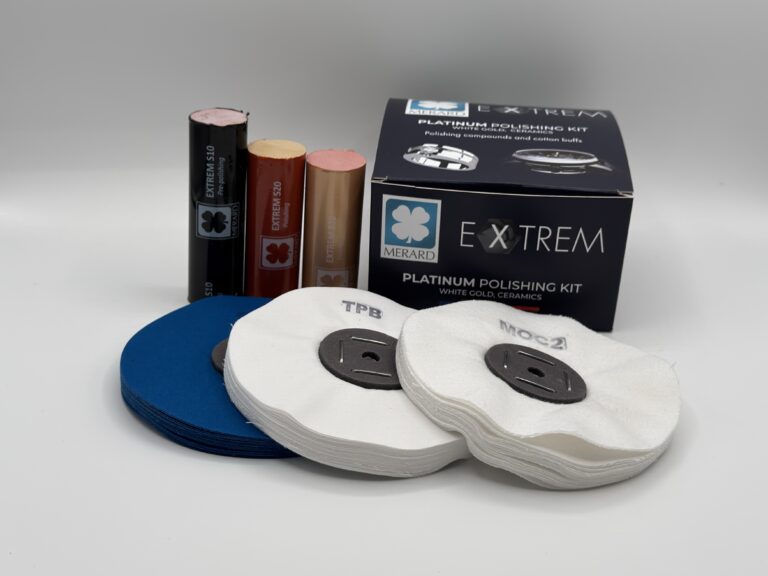 Le kit de polissage MERARD EXTREM Platine a été conçu pour répondre aux attentes spécifiques du polissage des matériaux complexes en bijouterie, joaillerie et horlogerie.